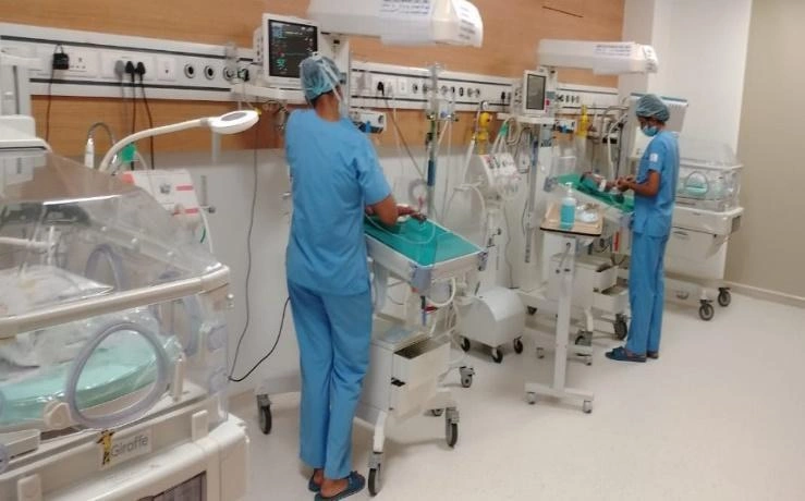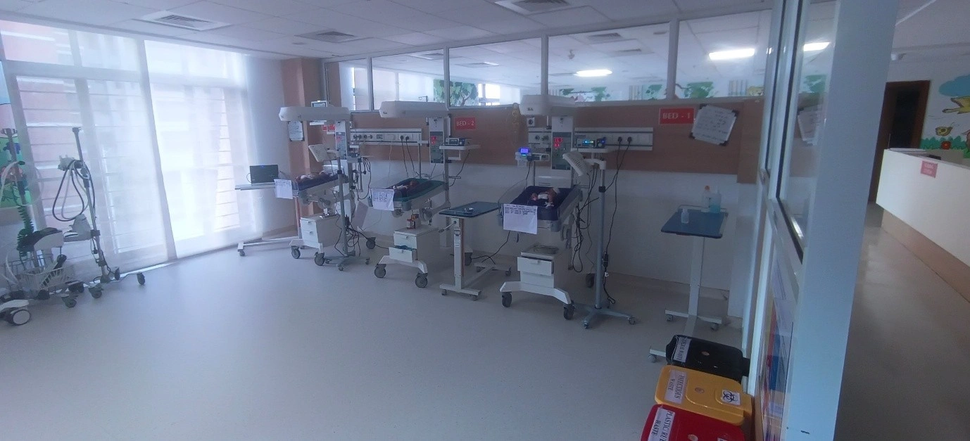 One Step Down NICU (Level II) consisting of 5 beds with warmers, incubator central oxygen, phototherapy units, feeding room with KMC, Central nursing station, duty Doctors room.